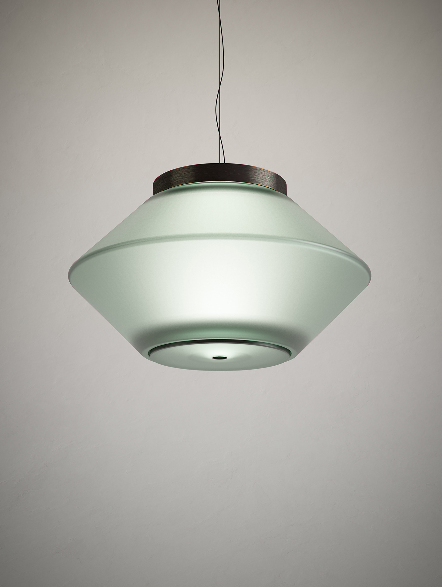 FOSS is a collection of 5 opaal glass lamps with a simple and refined geometric shape, in pastel colors, diffusing a soft light, creating a warm atmosphere.